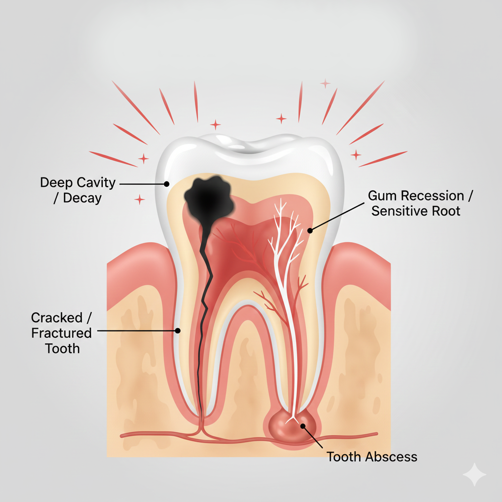 Severe or nonstop pain, heavy bleeding, a knocked-out tooth, big swelling, or fever with tooth pain are emergencies. Call our emergency dental services in Edmonton or search “emergency dental care near me” for immediate advice.
