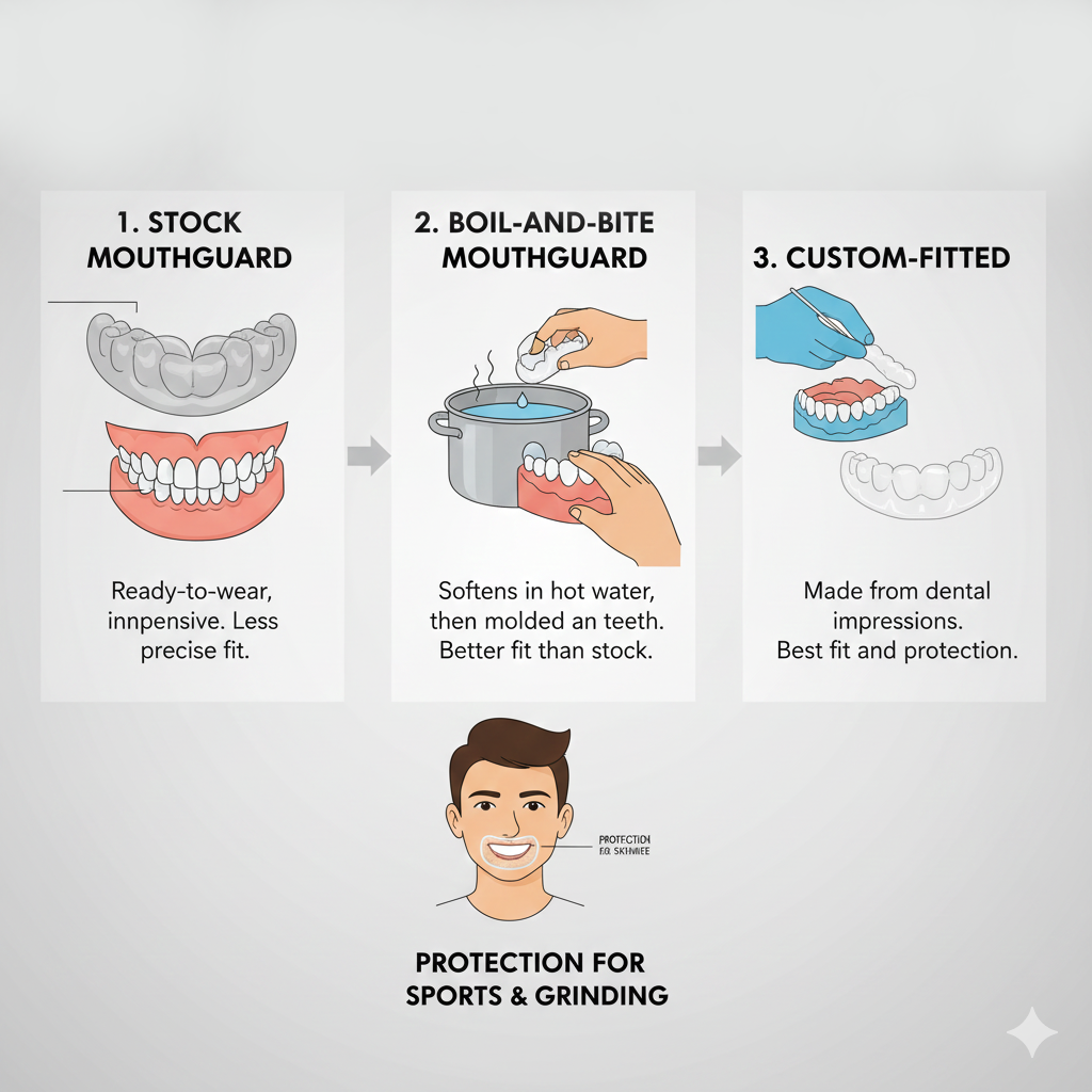 Our Edmonton preventive dentist provides custom-fitted mouthguards to protect your teeth from clenching, grinding, and sports-related injuries, ensuring lasting dental safety.